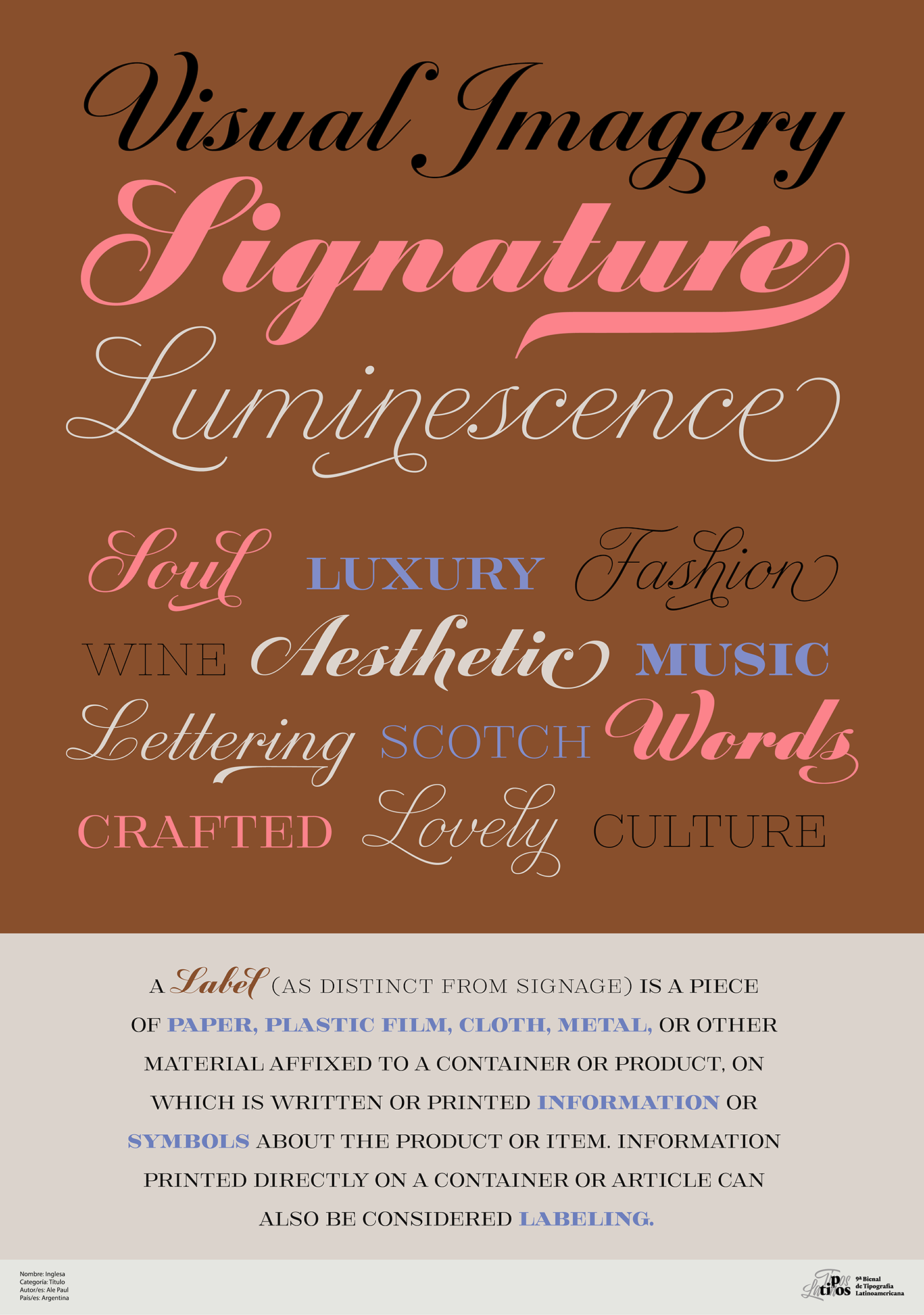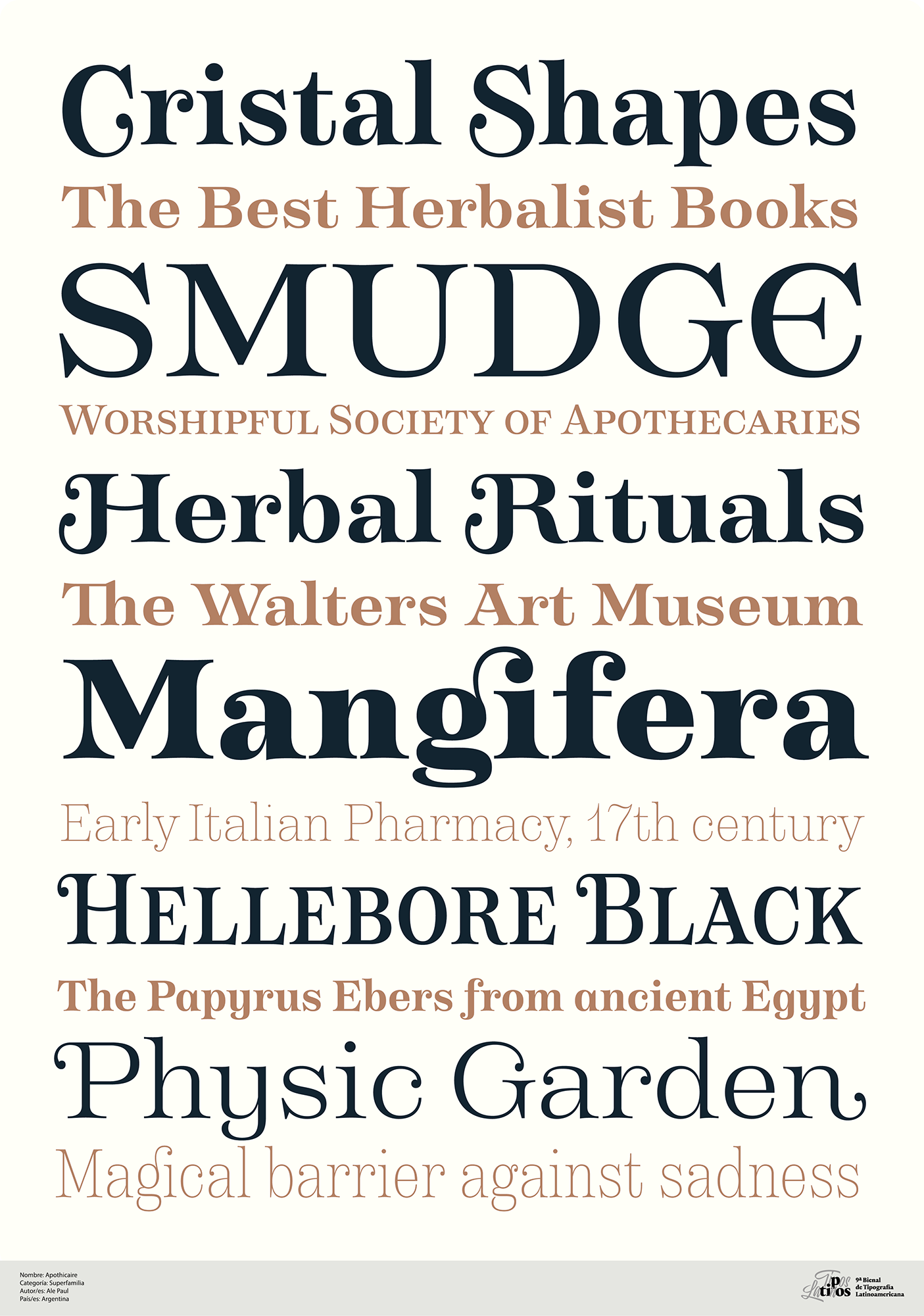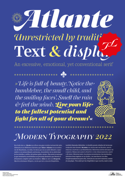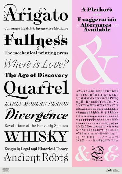 Tipos destinados a jerarquizar y/o conferir identidad a la información que la circunda. Su uso especial está orientado a textos breves y en cuerpos grandes.