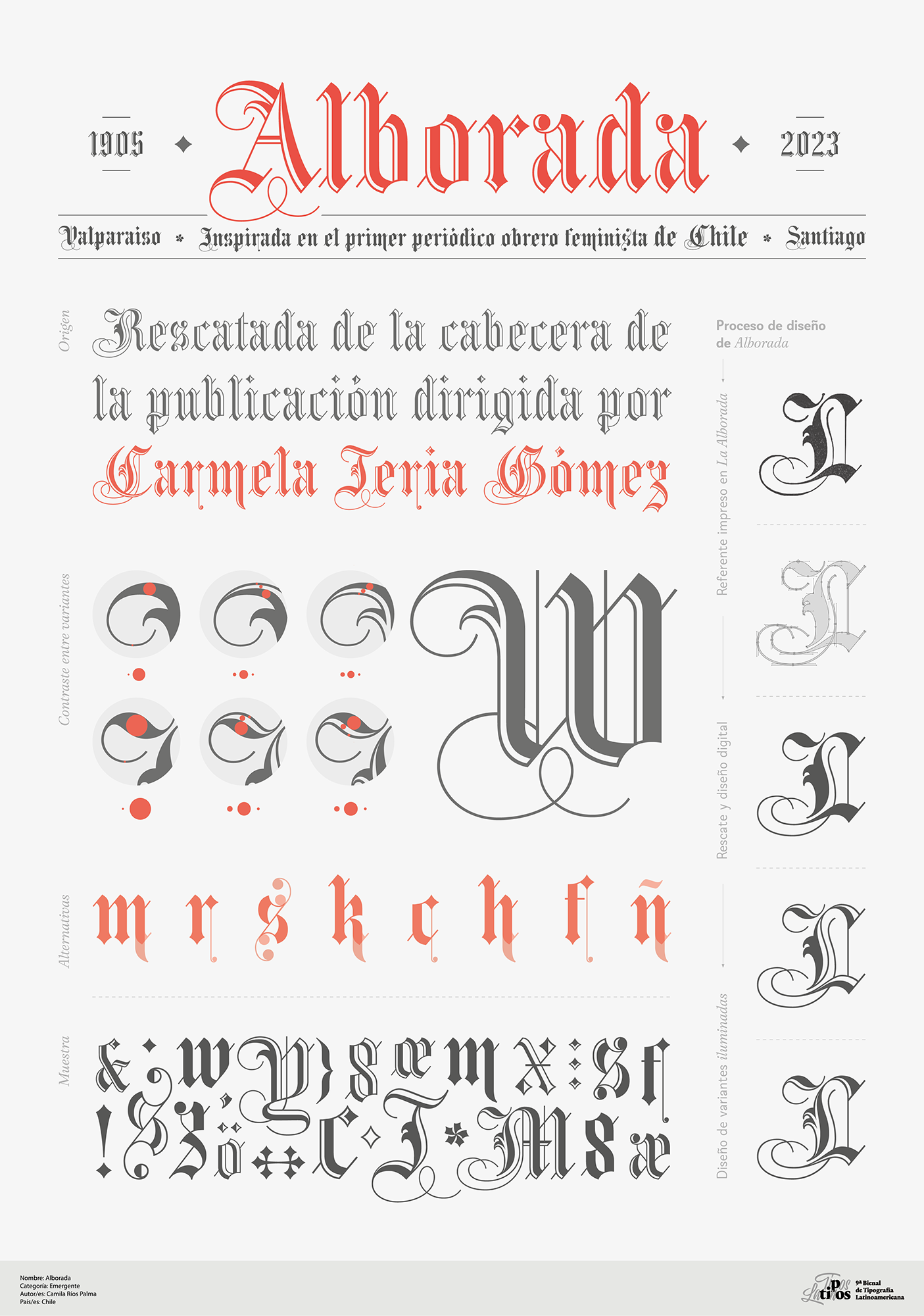 Trabajos realizados por estudiantes que están cursando o que hayan terminado sus estudios y/o no profesionales que nunca hayan publicado una familia tipográfica de manera comercial. Se ven excluidos de esta categoría los trabajos que hayan sido comercializados de cualquier manera (vendidos a una fundición o distribuidora, comercializados por cuenta propia, realizados por encargo para algún cliente particular). Los trabajos distribuidos a través de Google Fonts o plataformas similares quedan también excluidos de esta categoría. No pueden inscribirse dentro de esta categoría quienes hayan participado en la misma durante la bienal anterior habiendo quedado o no seleccionados sus proyectos.