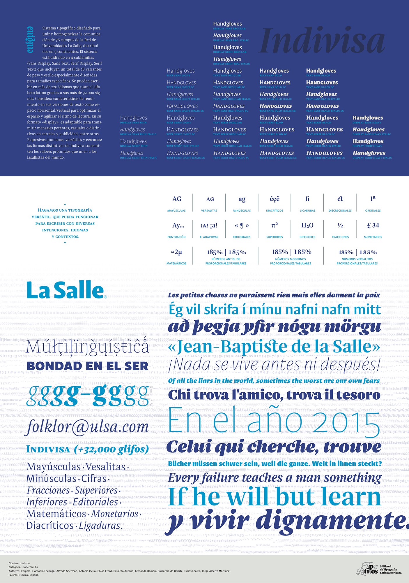 Sistemas tipográficos que contienen más de una «forma» o «estilo». Familias seriales (ej. Sans, Serif), familias con más de un eje de interpolación (peso, ancho, cuerpos ópticos, modulación, etc.), familias que contemplen más de un sistema de escritura (latino, cirílico, griego, árabe, etc).