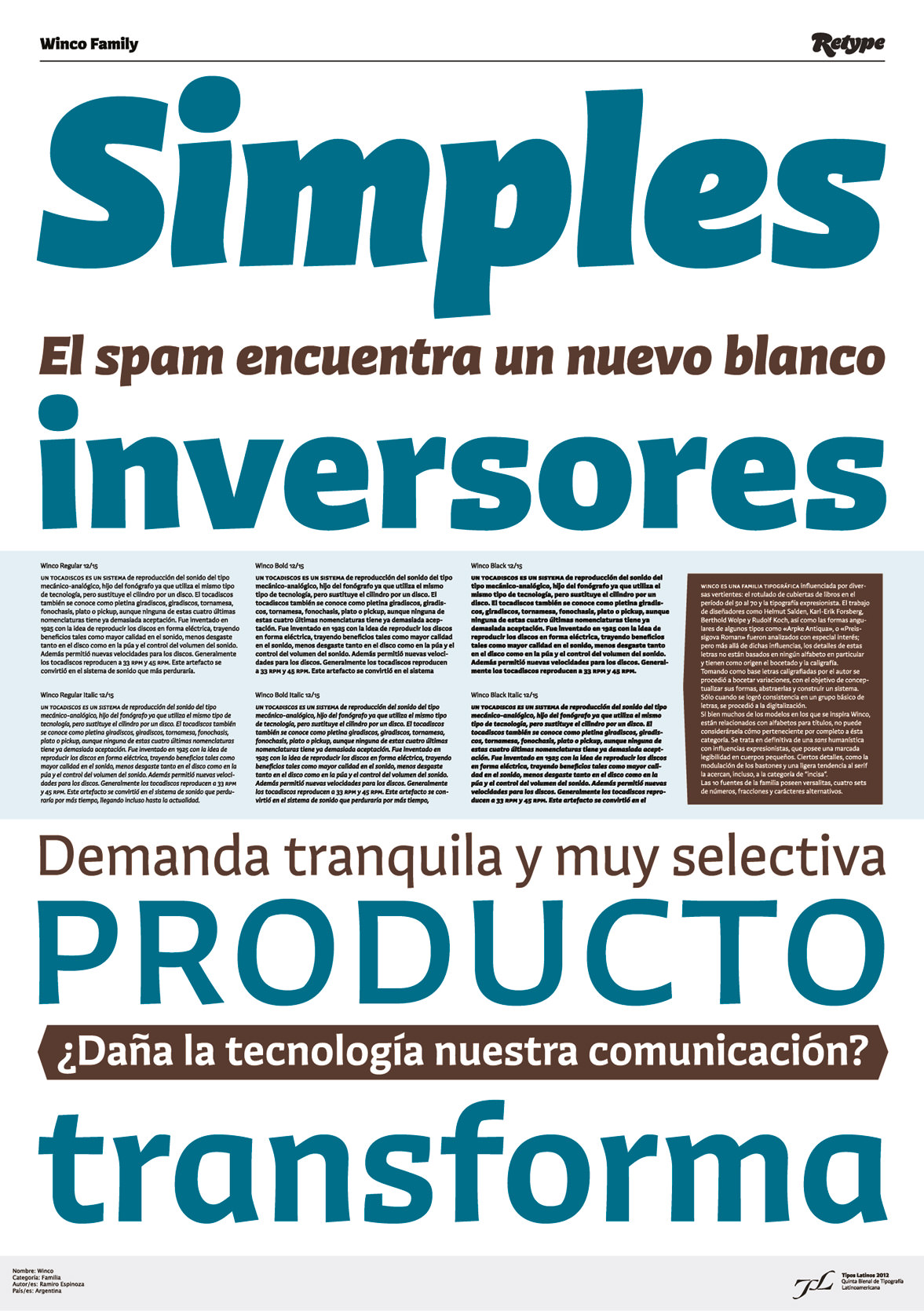 Desarrollos tipográficos compuestos por dos o más variables pertenecientes a cualquiera de las categorías enunciadas: Texto, Título, Experimental o Miscelánea.