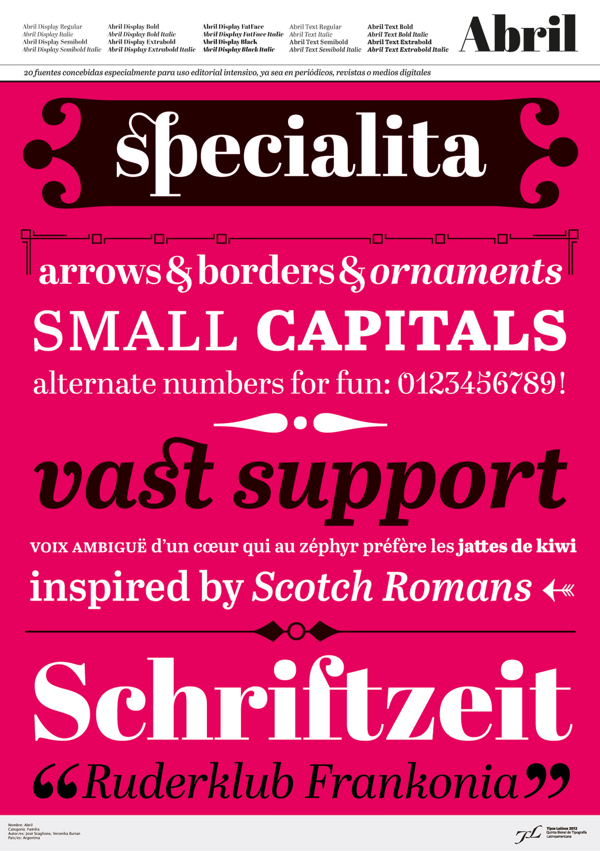 Tipografías destinadas a jerarquizar y/o conferir identidad a la información que la circunda. Su uso especial está orientado a textos breves y en cuerpos grandes.